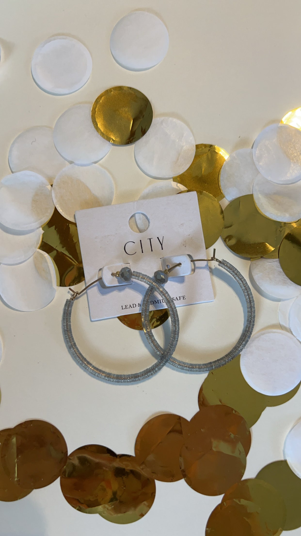 Gray Beaded Hoops