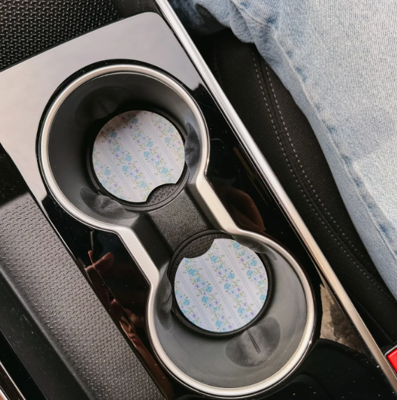 Keep your car clean and dry with our On the Road Car Coaster Set! This set of two matching coasters absorbs moisture to protect your car’s interior from spills and condensation. They’re easy to remove for cleaning and fit most standard cup holders. Packaged in a clear sleeve with a hang tab, they’re a practical and stylish accessory for any car.