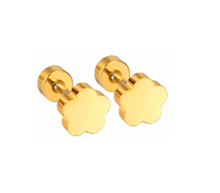 Style Description: Gold flower shape micro-stud. 6mm in size.