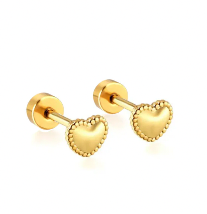 Style Description: Gold heart shape micro-stud. 5mm in size.