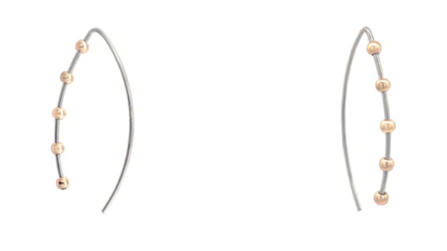 Silver Wire with Gold Beaded 1.75" Threaded Earring