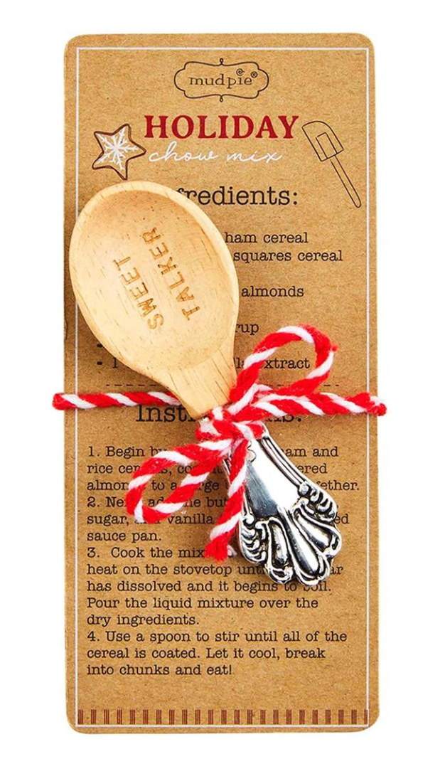 Engraved wood and silverplate candy scoop. Comes on recipe display card.
