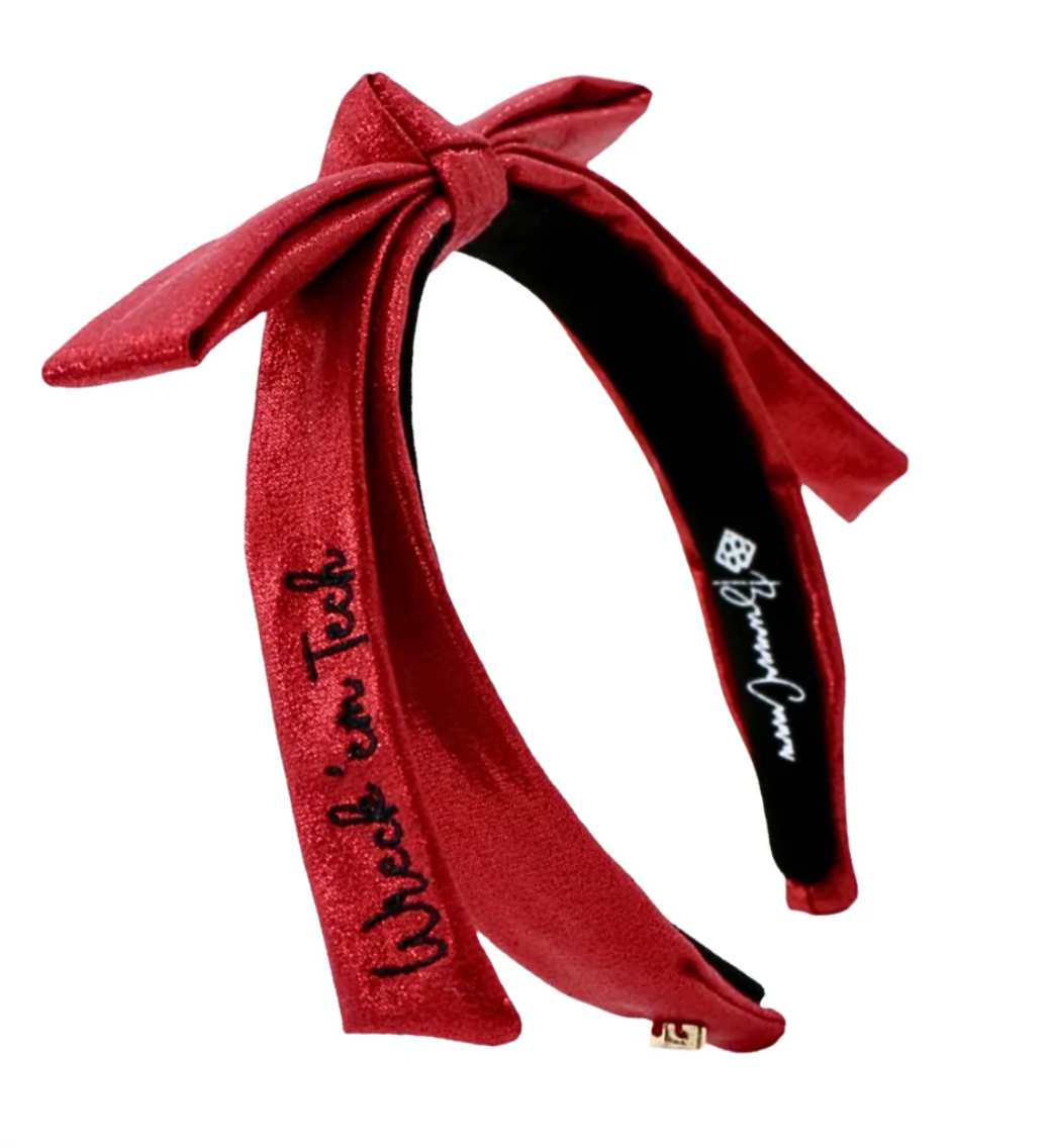 - Red Thin Texas Tech Ribbon Bow Headband with Black Embroidered Wreck'em Tech