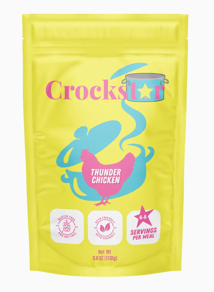 Crockstar's Thunder Chicken is a creamy ranch style chicken. It is delicious as tacos, over pasta, over a baked potato, over some broccoli or cauliflower or even on a Hawaiian roll! Enjoy this top selling chicken meal in 3 easy steps!